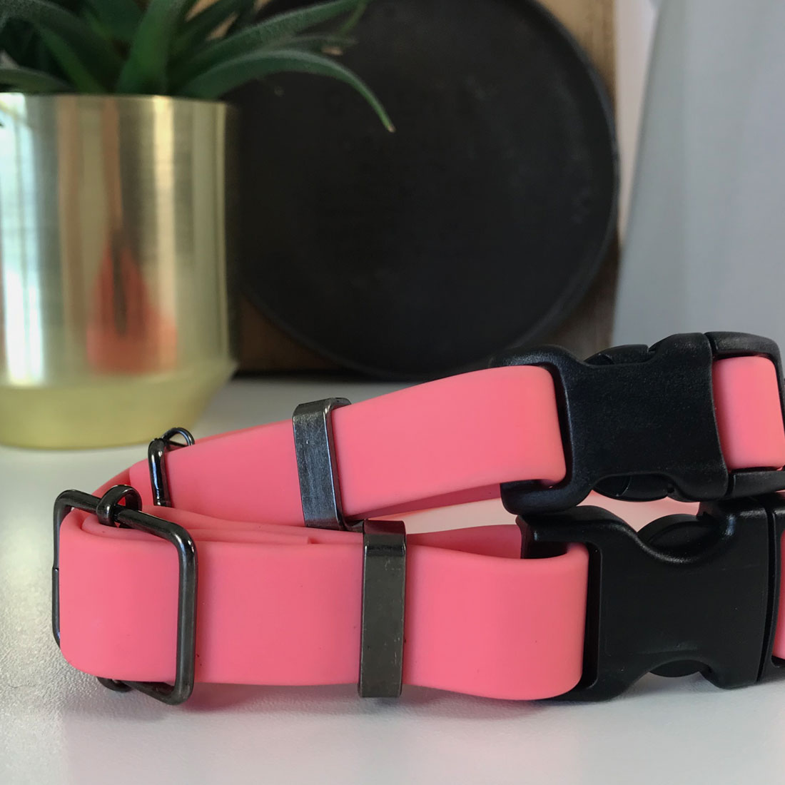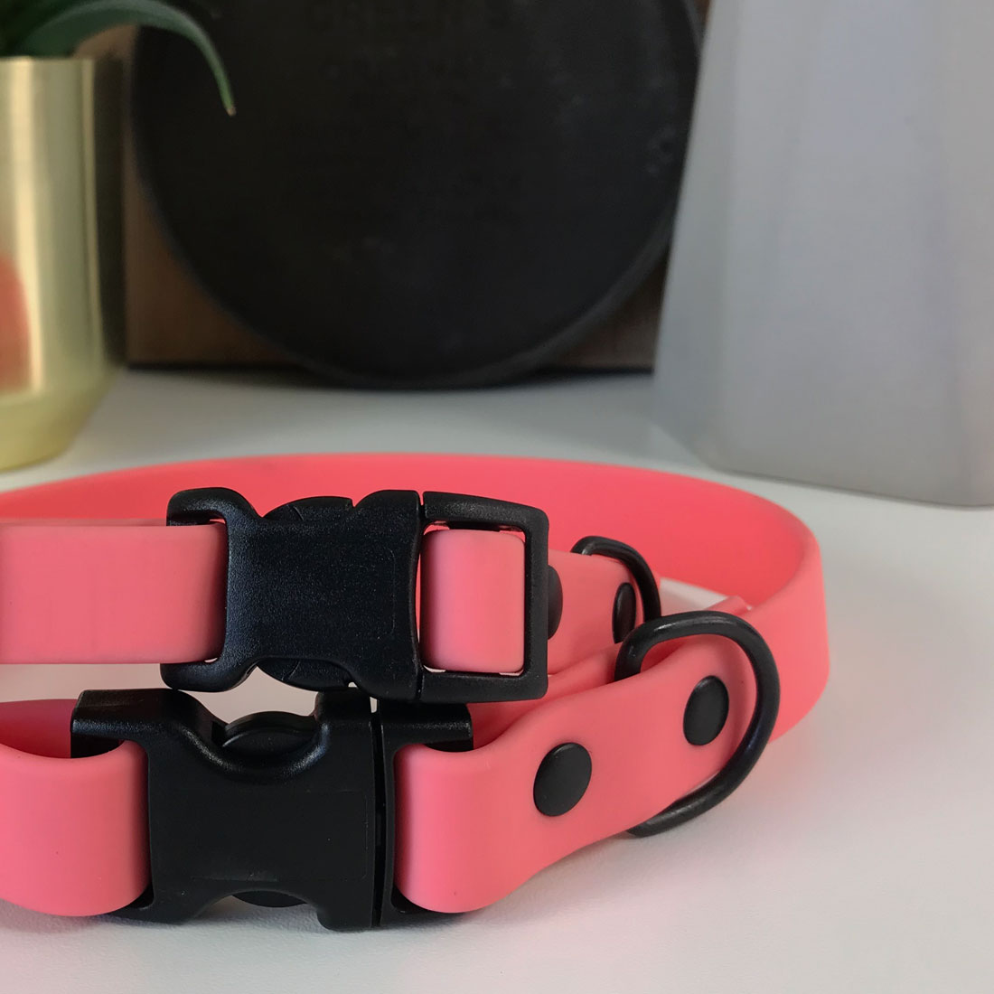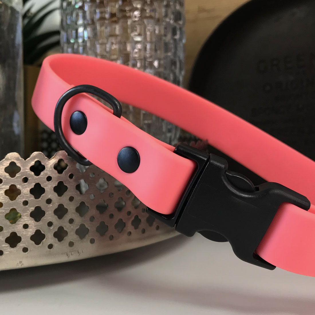 If your dog loves to go for a swim, or you are at the mercy of the Great British weather, you can now do it in style with our waterproof collar. Made from PVC, it is super soft and flexible to the touch, so as not to aggravate your dog’s neck, whilst having a high tensile strength making it extremely robust.